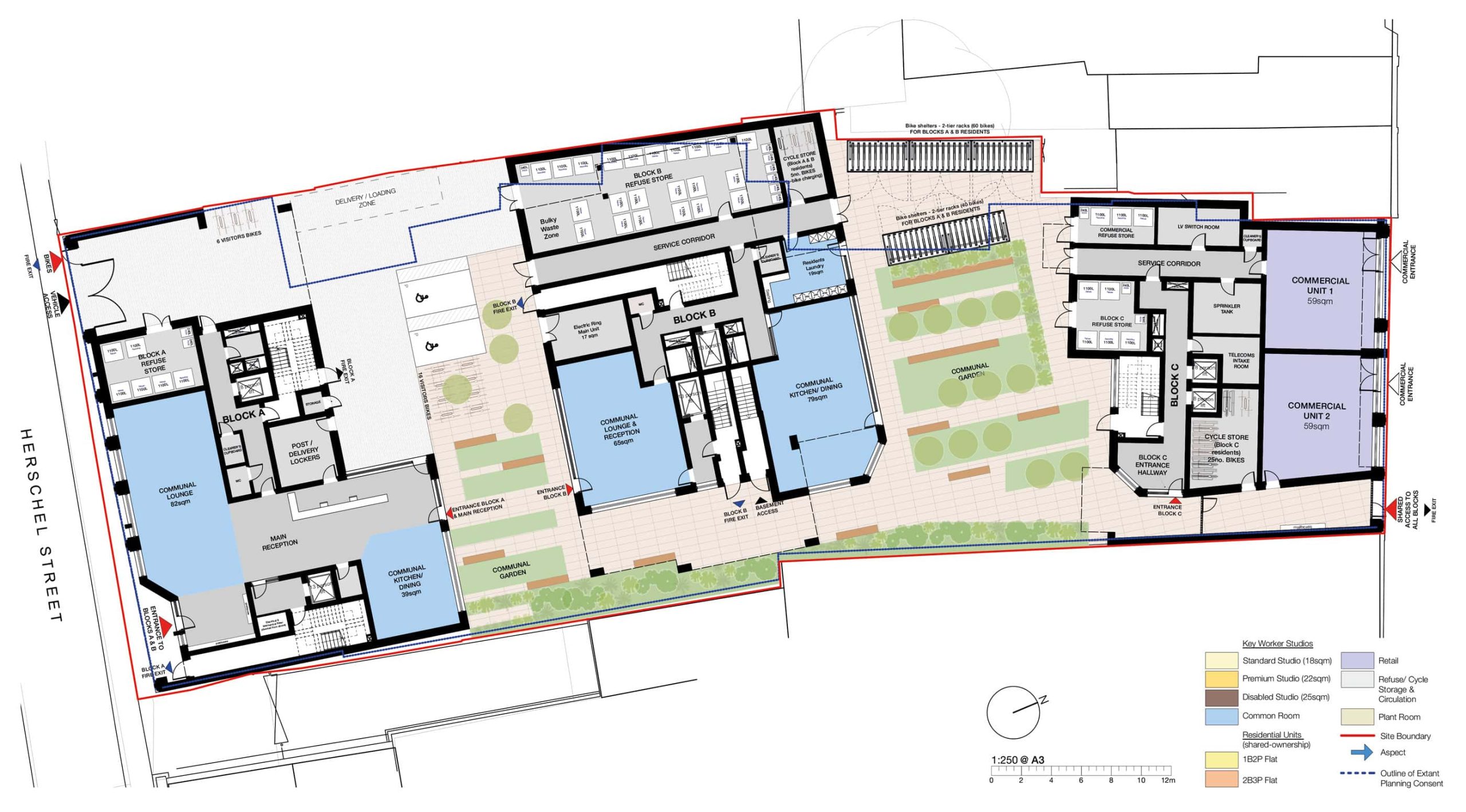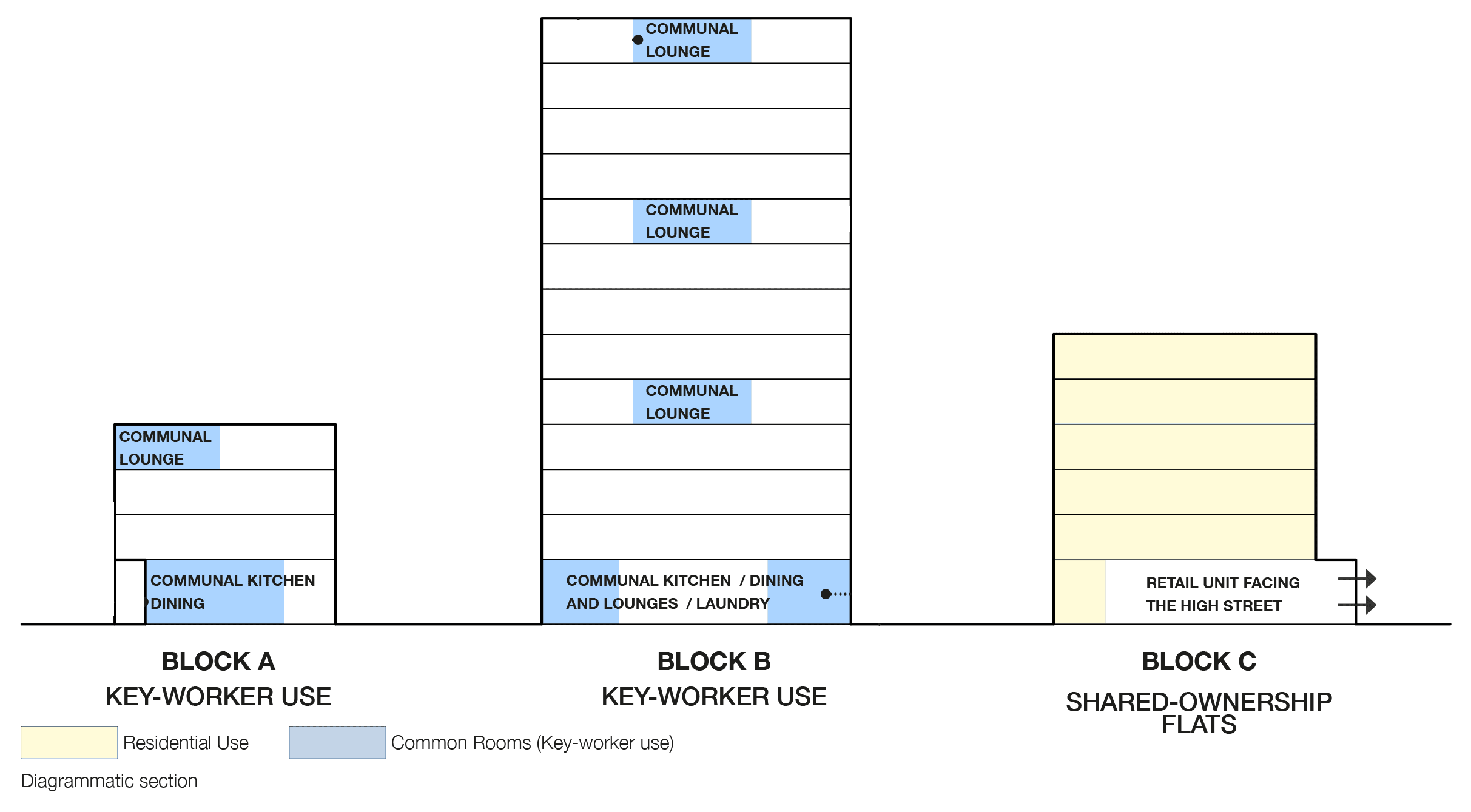 - Approximately 250 key-worker studios with well-designed communal rooms and shared external amenity space